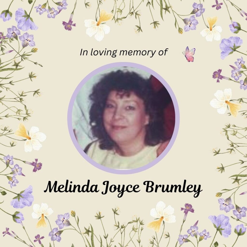 Melinda Joyce (Adams) Brumley, 72, passed away on July 8th, 2025. A celebration of life will be held on Saturday, August 9th, at 2 p.m. at 508 S Broadway, Oak Grove, Missouri.
