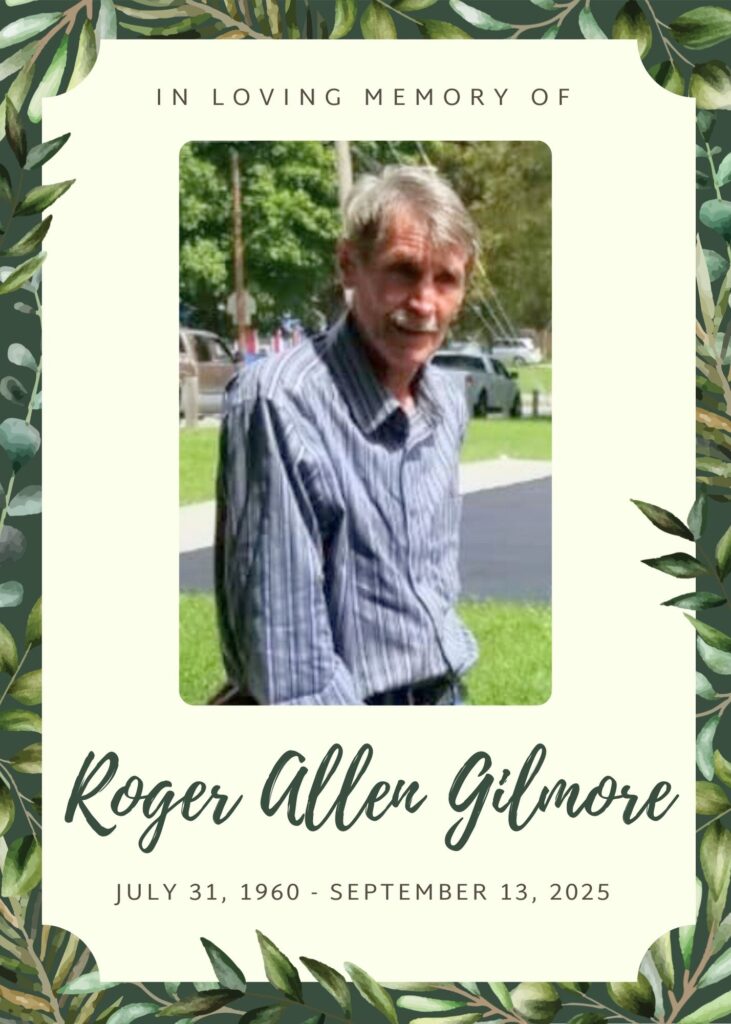 Roger Allen Gilmore, born July 31, 1960, in Kansas City, Missouri, passed away on September 13, 2025, in Oak Grove, Missouri. He was 65 years old.